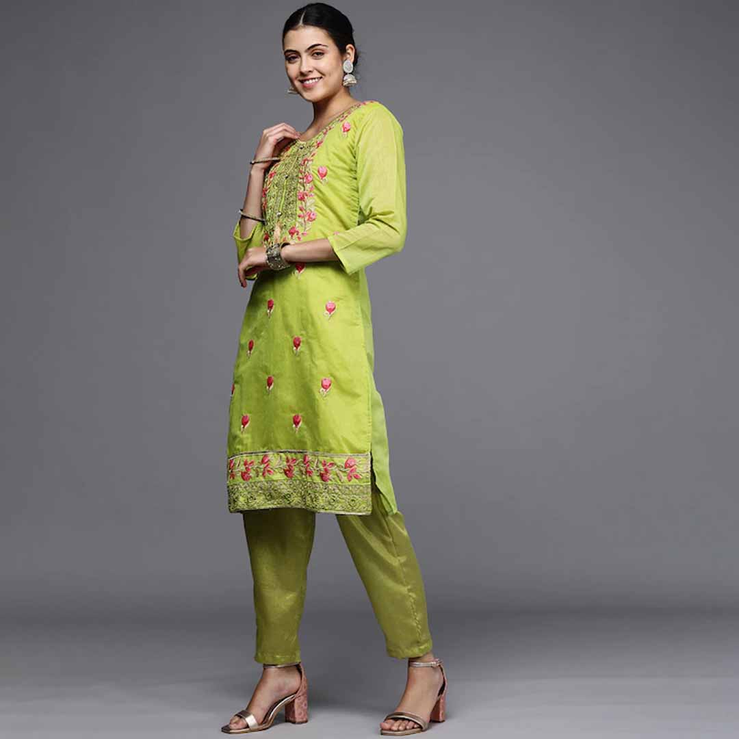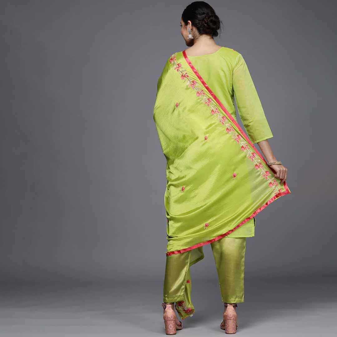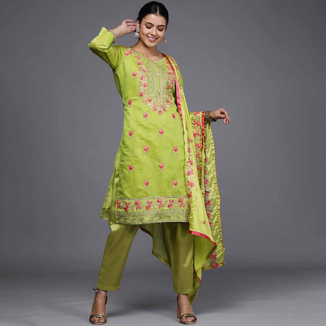 Size & Fit Top Fabric length : 2 m Bottom Fabric length: 2 m Dupatta length : 2.10 m (Approx) Material & Care Cotton Blend Dry Clean Only