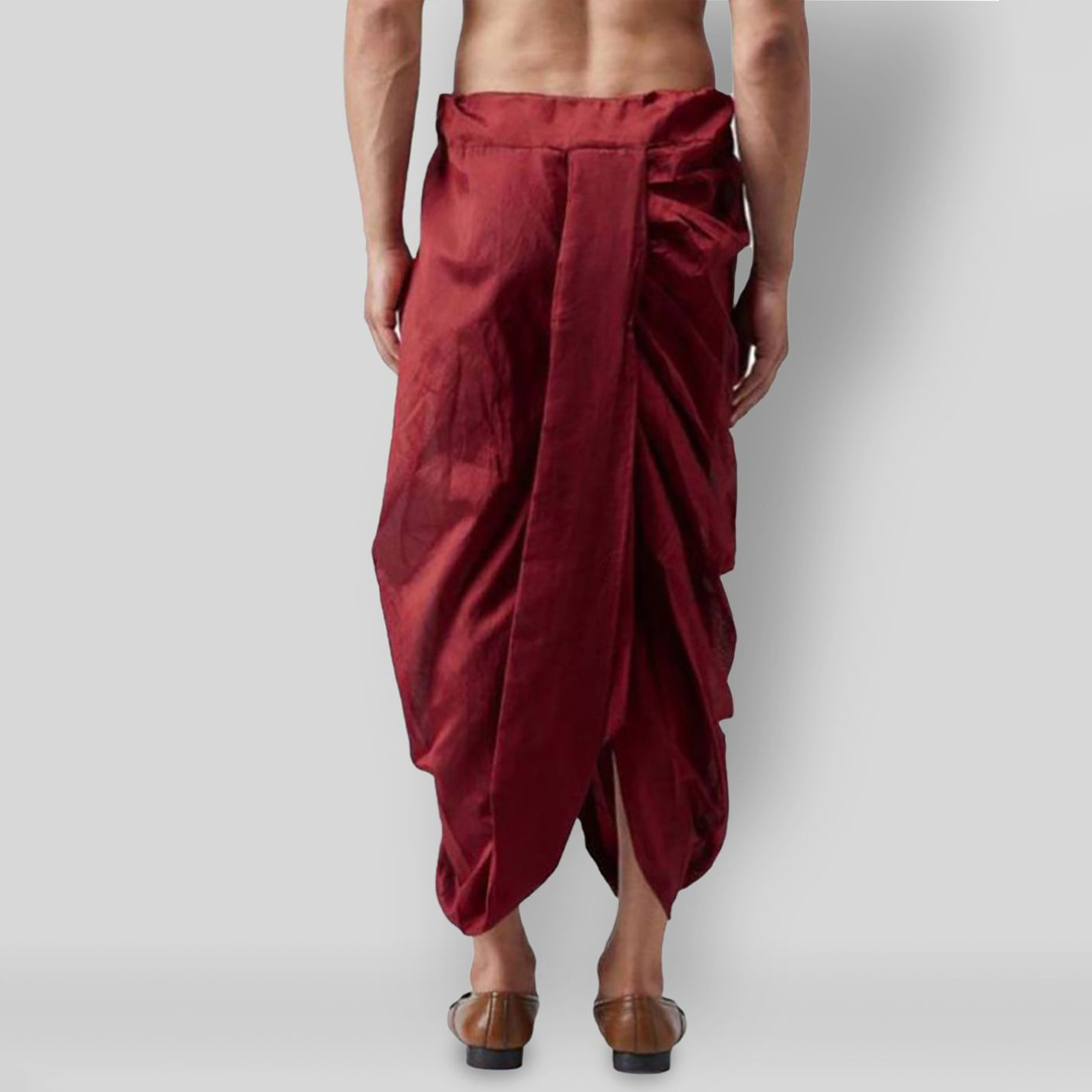 Men's ready-to-wear Dhoti. It is made of silk dupion fabric with a designer look giving it a traditional ethnic look. Dhoti's Length is 42 inches. Dhoti Border design may vary (Different) according to availability but we are sure we will send the good and attractive border dhoti. These are ready-to-wear dhoti in a pant style for hassle-free comfortable wear. Do not panic if the dhoti looks slightly long as it will give a slightly fluffy look which is good to have. Suitable for: Party, Weddings, Regular Wear, Celebrations, Occasions, Festivals, Lohri, Makar Sakranti, Baisakhi, Holi, Raksha Bandhan, Dussehra, Diwali, Navratri, Pooja, Christmas, Onam, Ganesha, and Gifting.