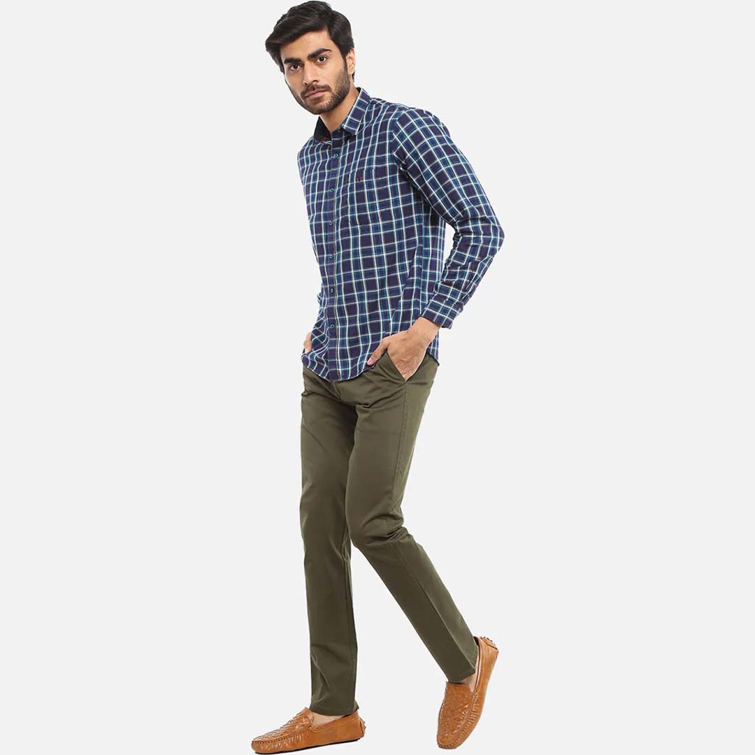 level up your wardrobe essentials with this stylish pair of slim fit trousers from arrow. the cotton spandex blend fabric of the trousers ensures an impeccable fit and comfort. match them with a solid t-shirt and your favourite pair of sneakers for a relaxed, casual look.