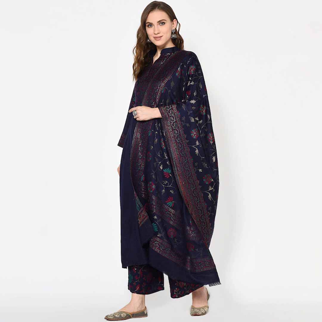 Navy Blue woven design unstitched dress material