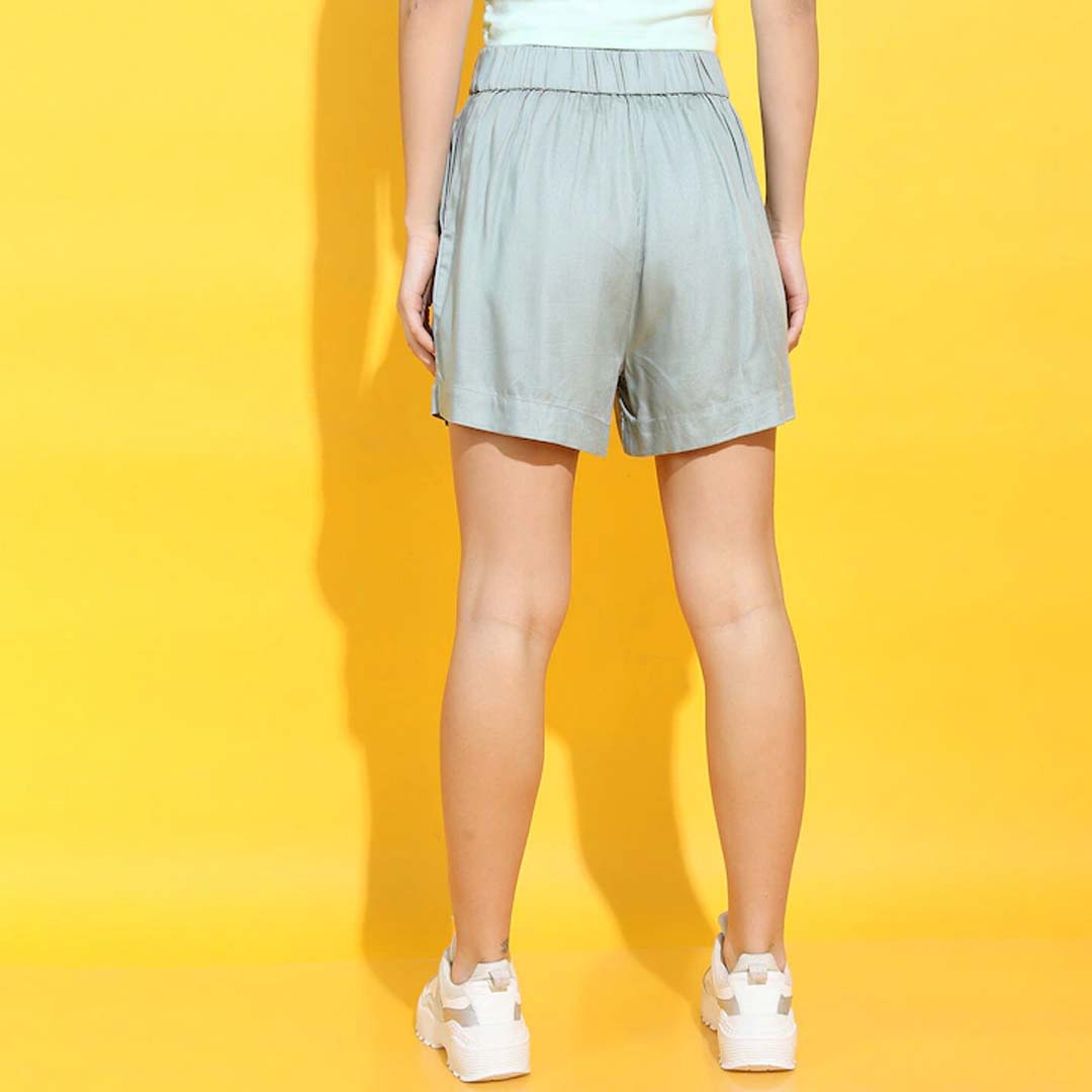 Olive green solid mid-rise regular shorts, has 2 pockets, drawstring closure