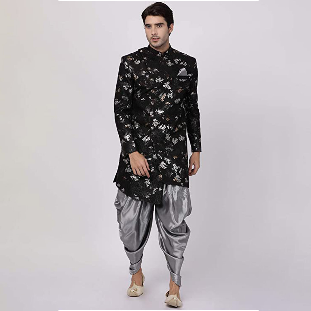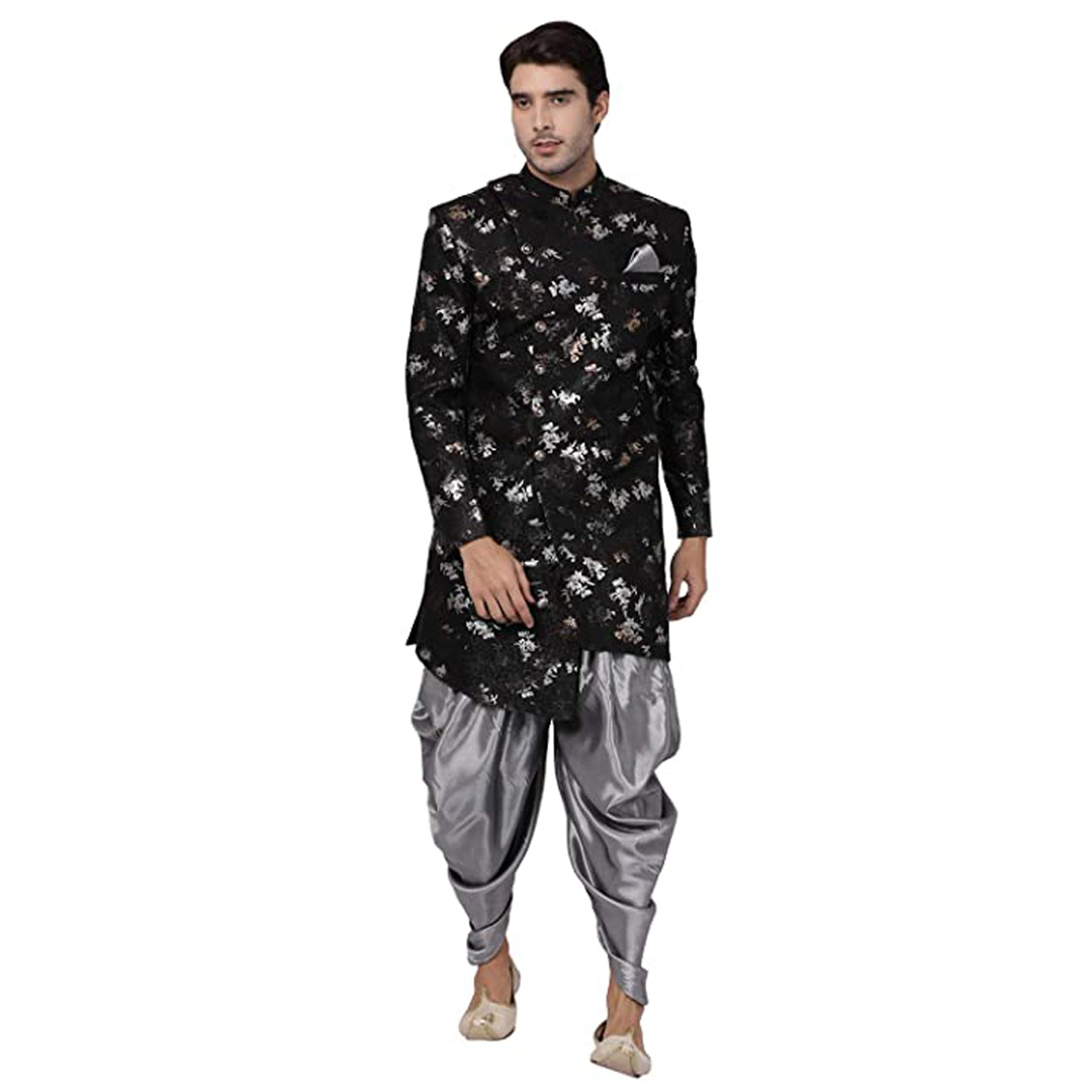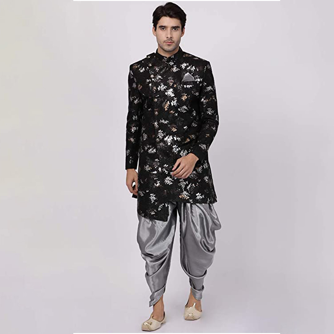 Product Details: We introduces to you these classy sherwani for men stylish latest design in variety of material and designs for all occassions. This fabric has been designed keeping in mind the latest trends in a semi formal fashion or occassional fashion. Engineering garments which fit all body types and style is our aim. We offer not just servani for man for wedding but also indo western for men and semi sherwani as well covering the entire space. Our servani are constructed in such a way that you can adorn it with a churidar, dhoti for men or a patiala too. To complete the look adorn a mojari or jutti slippers for men stylish, you may also try an authentic Kohlapuri chappal for men, the fashionistas and millennial folks may experiment with a brogues or oxfords juta for men stylish. Suitable for: Party, Weddings, Regular Wear, Celebrations, Occasions, Festivals, Lohri, Pongal, Makar Sakranti, Baisakhi, Holi, Eid, Raksha Bandhan, Dussehra, Diwali, Navratri, Pooja, Christmas, Onam, Ganesh Chaturthi, Janmasthmi and Gifts for Mens. SIZE:The above mentioned model is wearing the size of "L" WASH AND CARE: Dry Clean Only FIT TYPE: Regular Fit