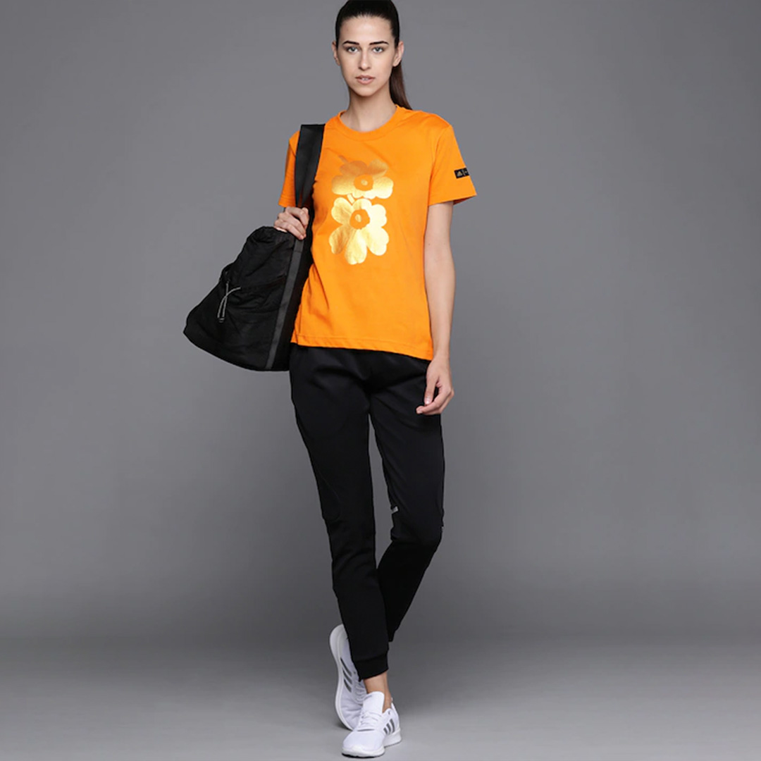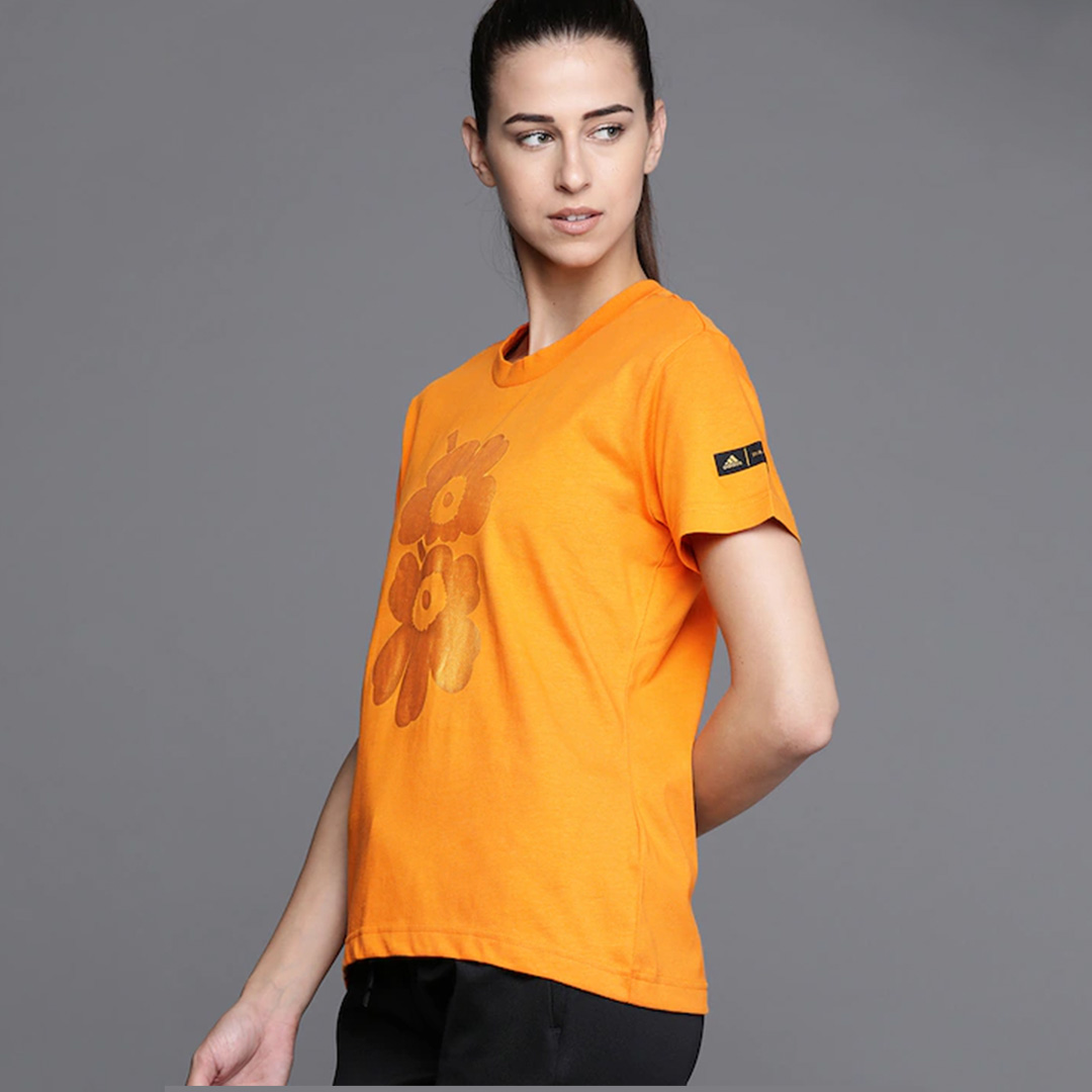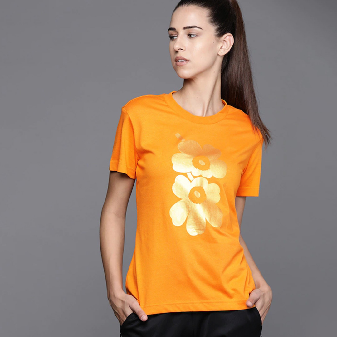 Orange with tinge of yellow and golden Tshirt for women