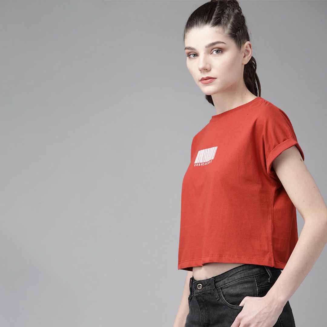 Rust Red printed cropped T-shirt